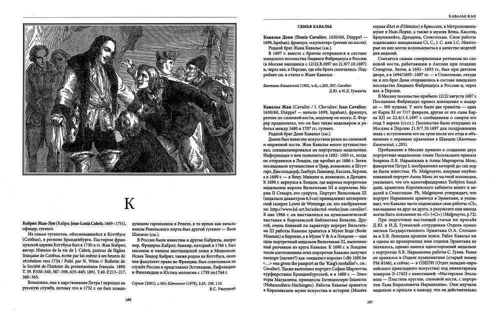 Иностранные специалисты в России в эпоху Петра Великого: биографический словарь выходцев из Франции, Валлонии, франкоязычных Швейцарии и Савойи: 1682-1727 / Герм. ист. ин-т в Москве и др.; под ред. В. С. Ржеуцкого и Д. Ю. Гузевича; при участии А. Мезен. – М.: Ломоносовъ, 2019. – 798, [1] с.: ил. - Библиогр.: с. 715-794. - Указ.: с. 643-685. - ISBN 978-5-91678-466-4.