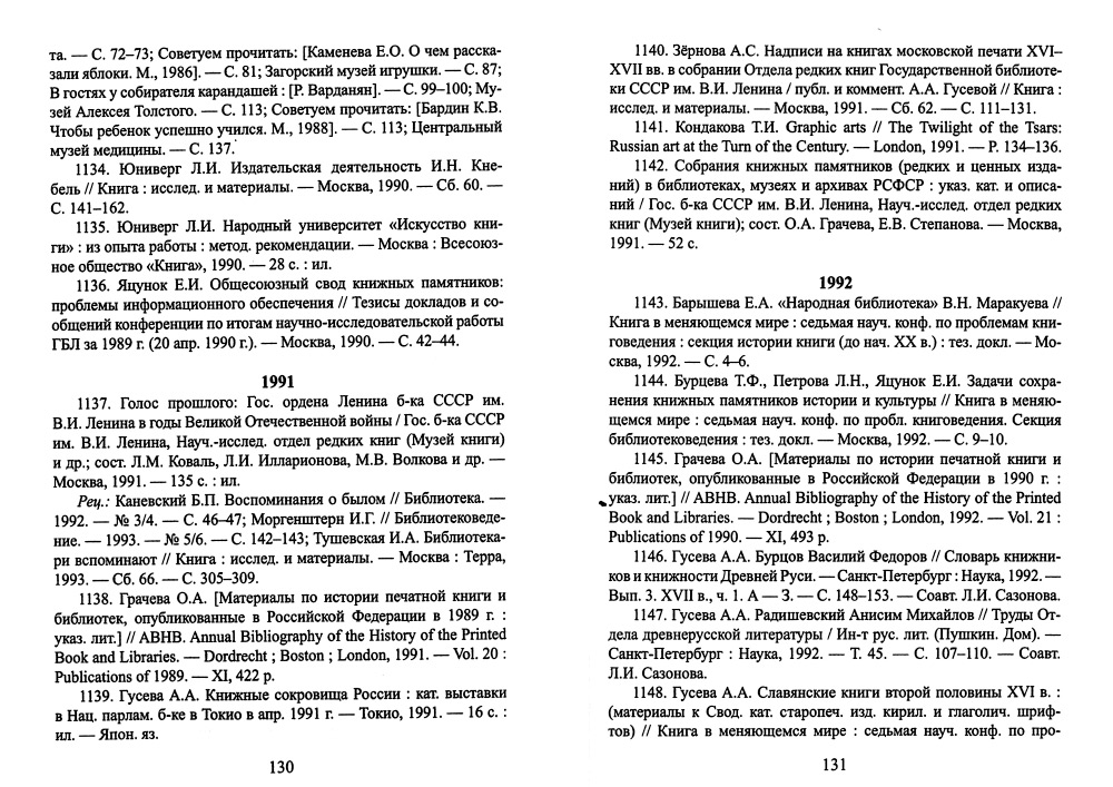 Фурсенко, Леонид Иванович. Публикации сотрудников научно-исследовательского отдела редких книг (Музея книги): библиографический указатель, 1918-2018 / Л. И. Фурсенко; Рос. гос. б-ка, Науч.-исслед. отд. ред. кн. (Музей кн.). – М.: Пашков дом, 2019. – 371, [2] с. – (100 лет Отделу редких книг РГБ). - Вспом. указ.: с. 343-372. - ISBN 978-5-7510-0754-6.